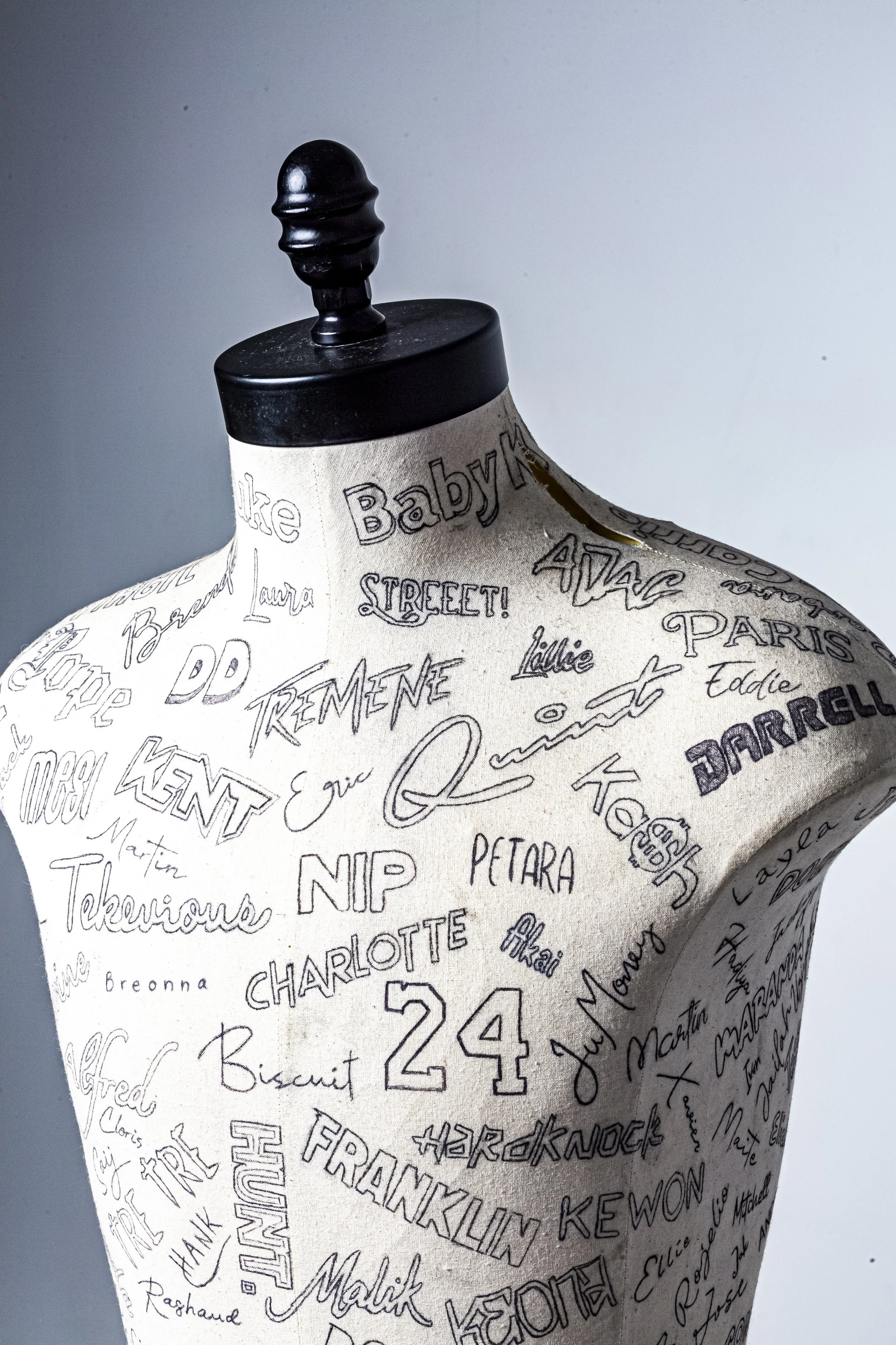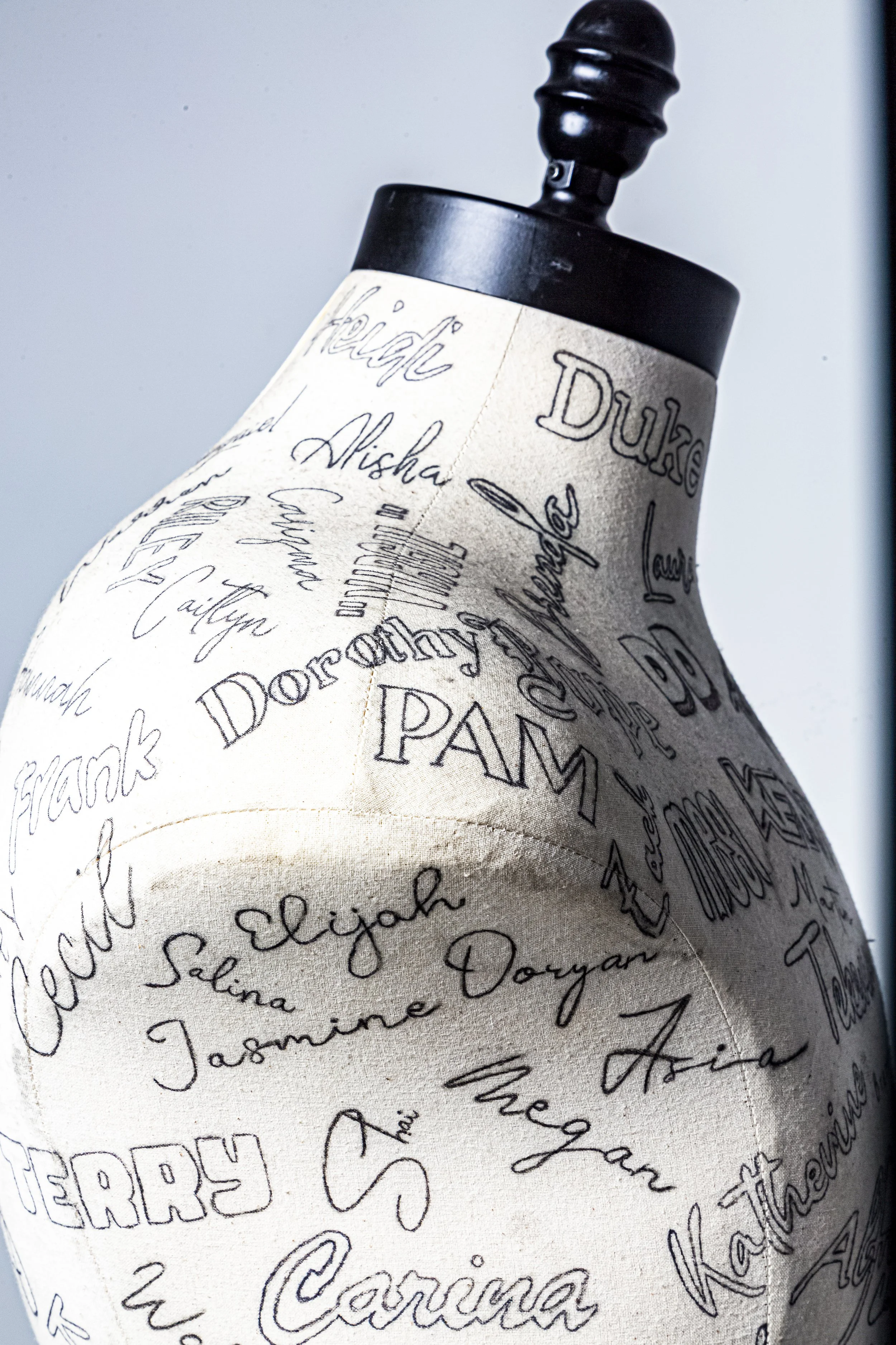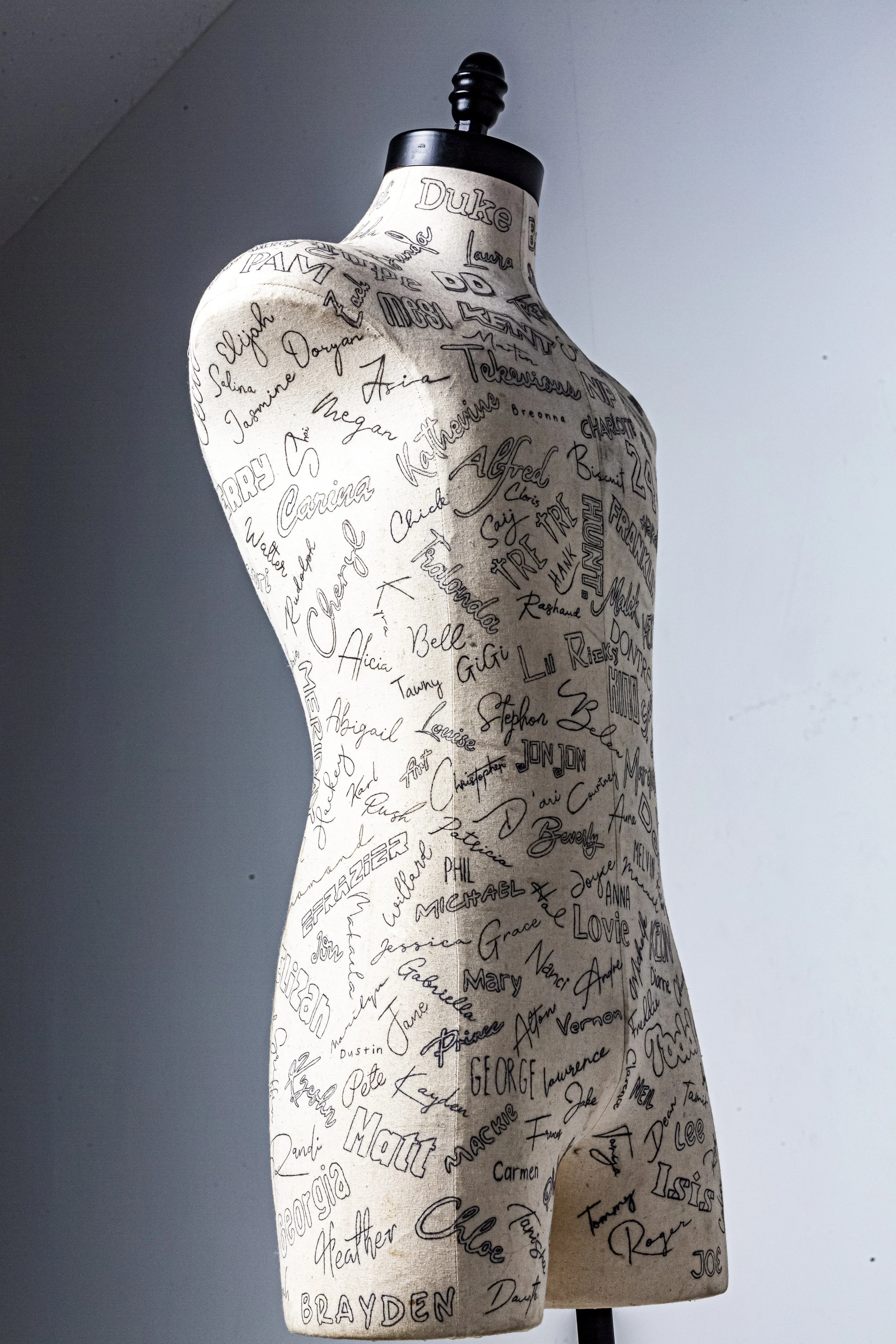 The most fundamental tool in fashion design, the mannequin, used as a canvas to memorialize 300+ hand-drawn names submitted by our community — real stories, real people, forever remembered through fashion.